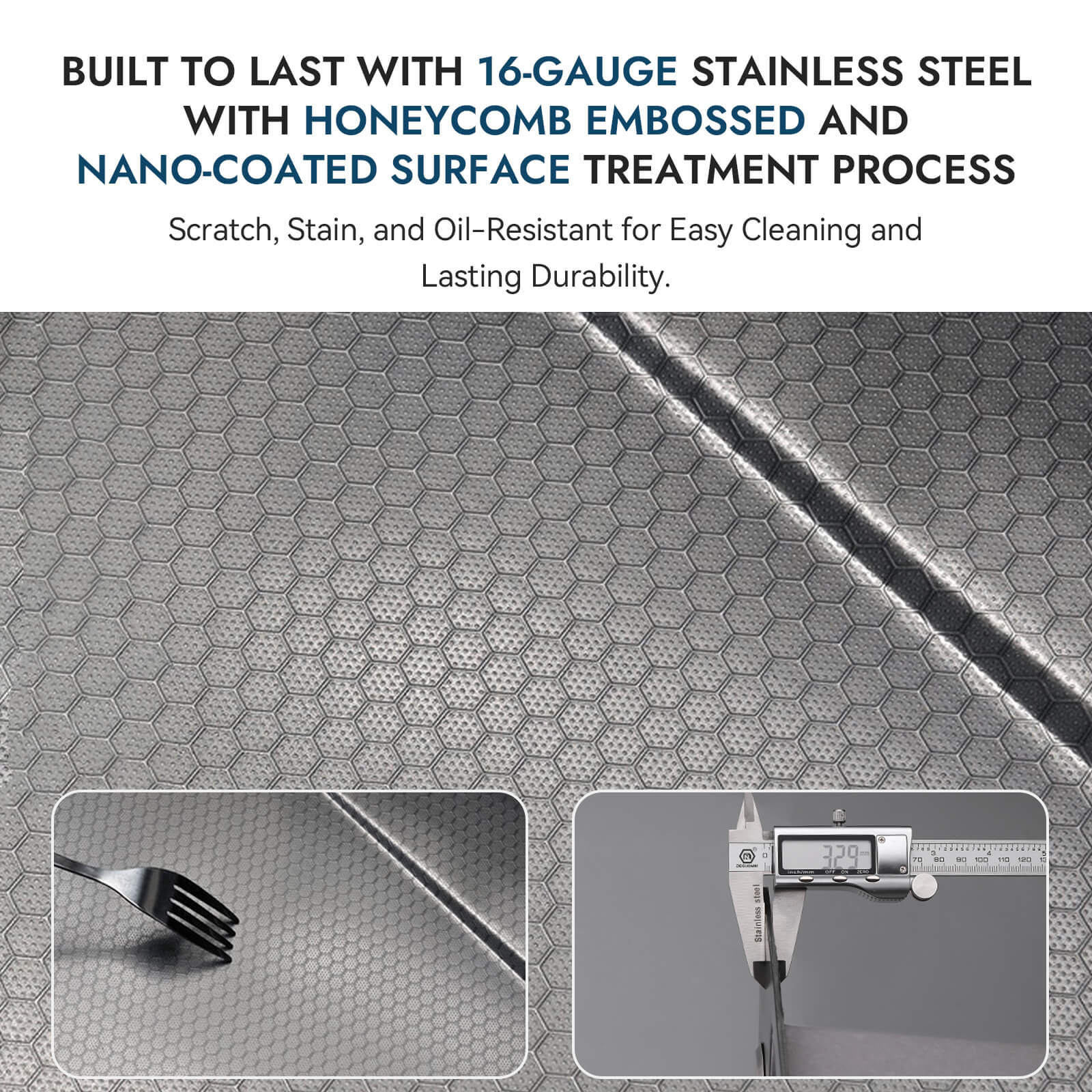 • Material: 16 Gauge Stainless Steel & Nano-coated
