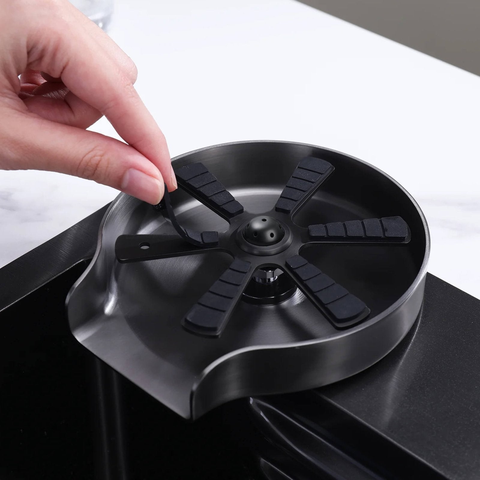 • Diversified spray angles enhance cup cleaning effortlessly. A touch triggers instant cleaning, auto halts upon pickup.