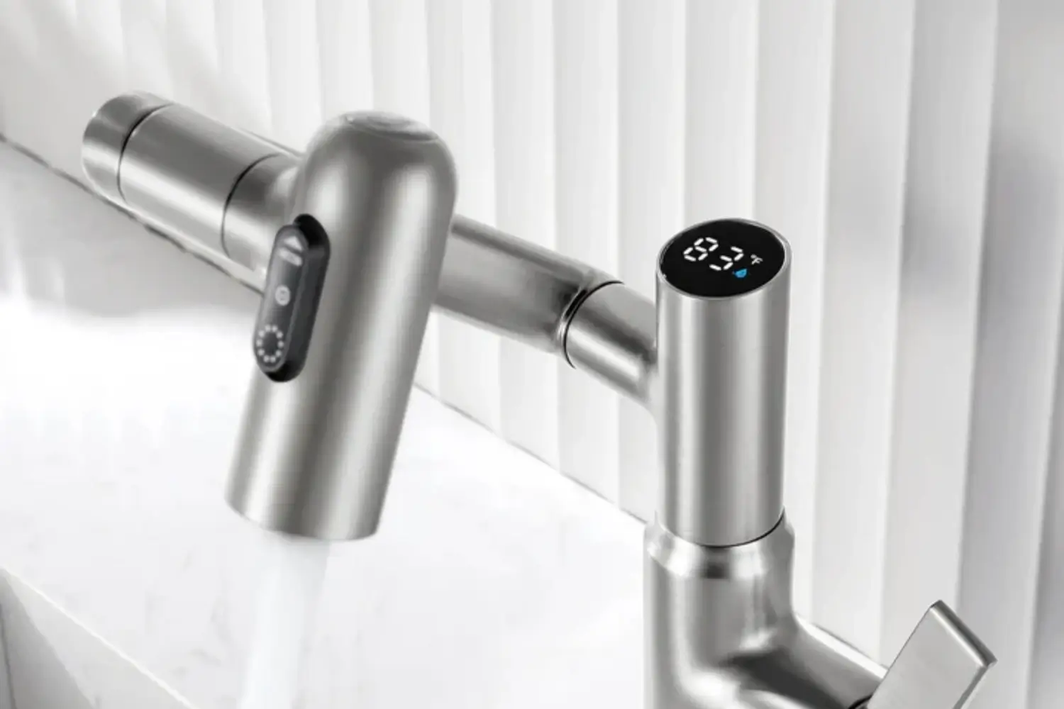 This smart bathroom faucet has a temperature display function. When the water is flowing, the real-time water temperature will be shown on the screen; no batteries are needed.
