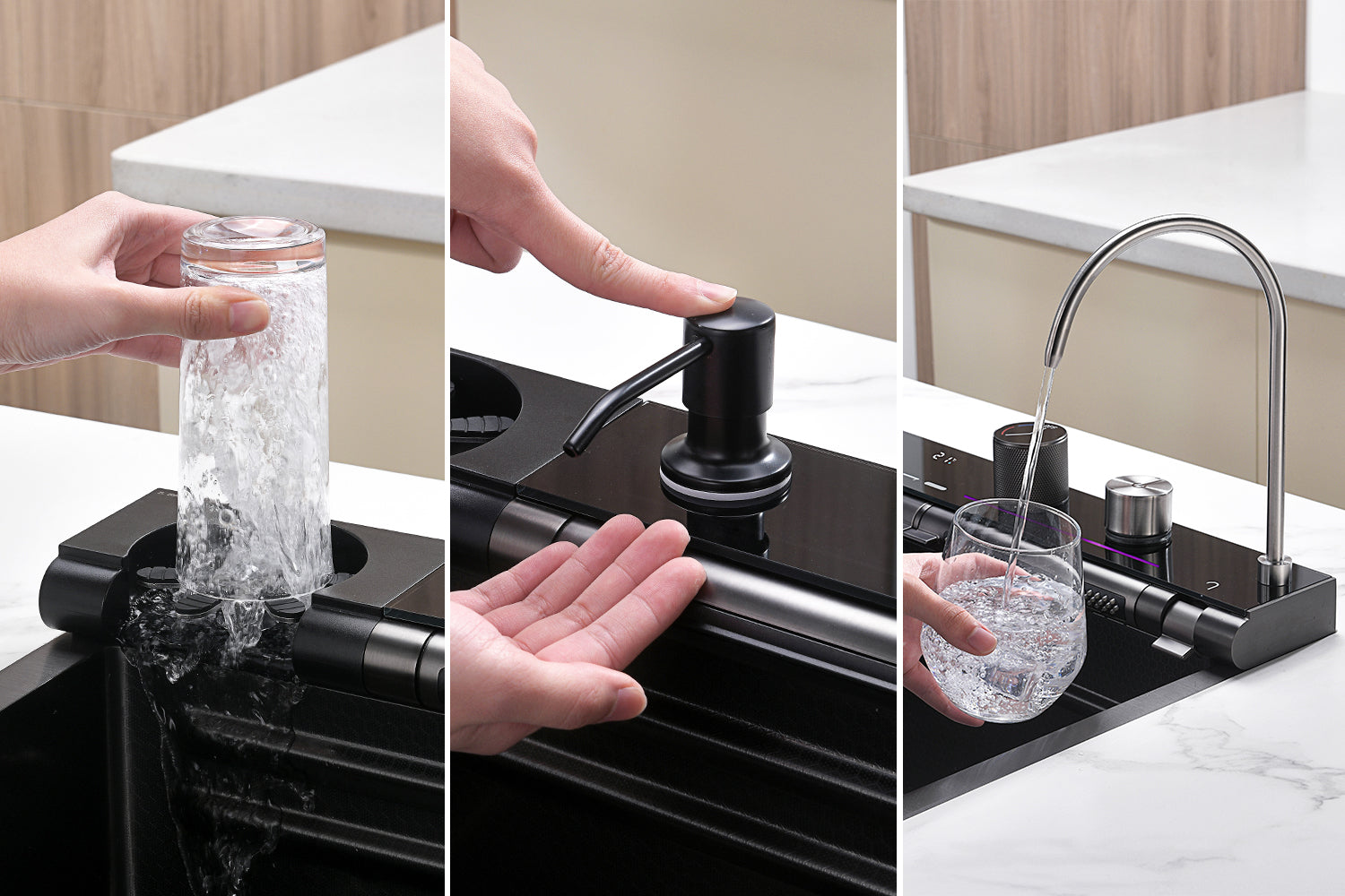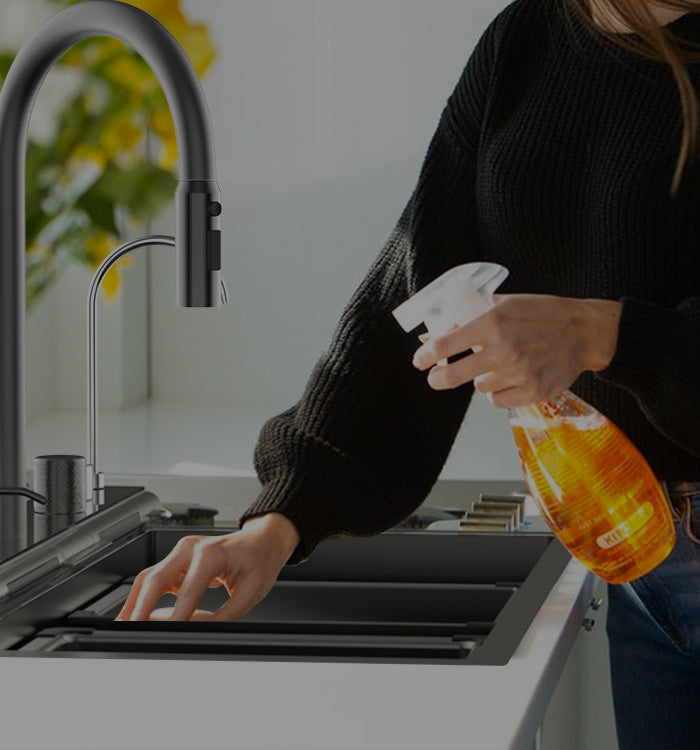 Upgrade your kitchen with Lefton's sleek single bowl kitchen sink with faucet, crafted from premium stainless steel.