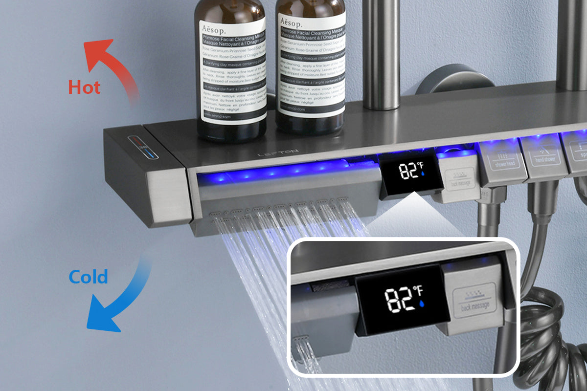 Say goodbye to sudden temperature changes with the advanced thermostatic system of the LEFTON smart shower. The digital temperature display lets you set and maintain your ideal water temperature, ensuring a consistently safe and comfortable shower experience every time.