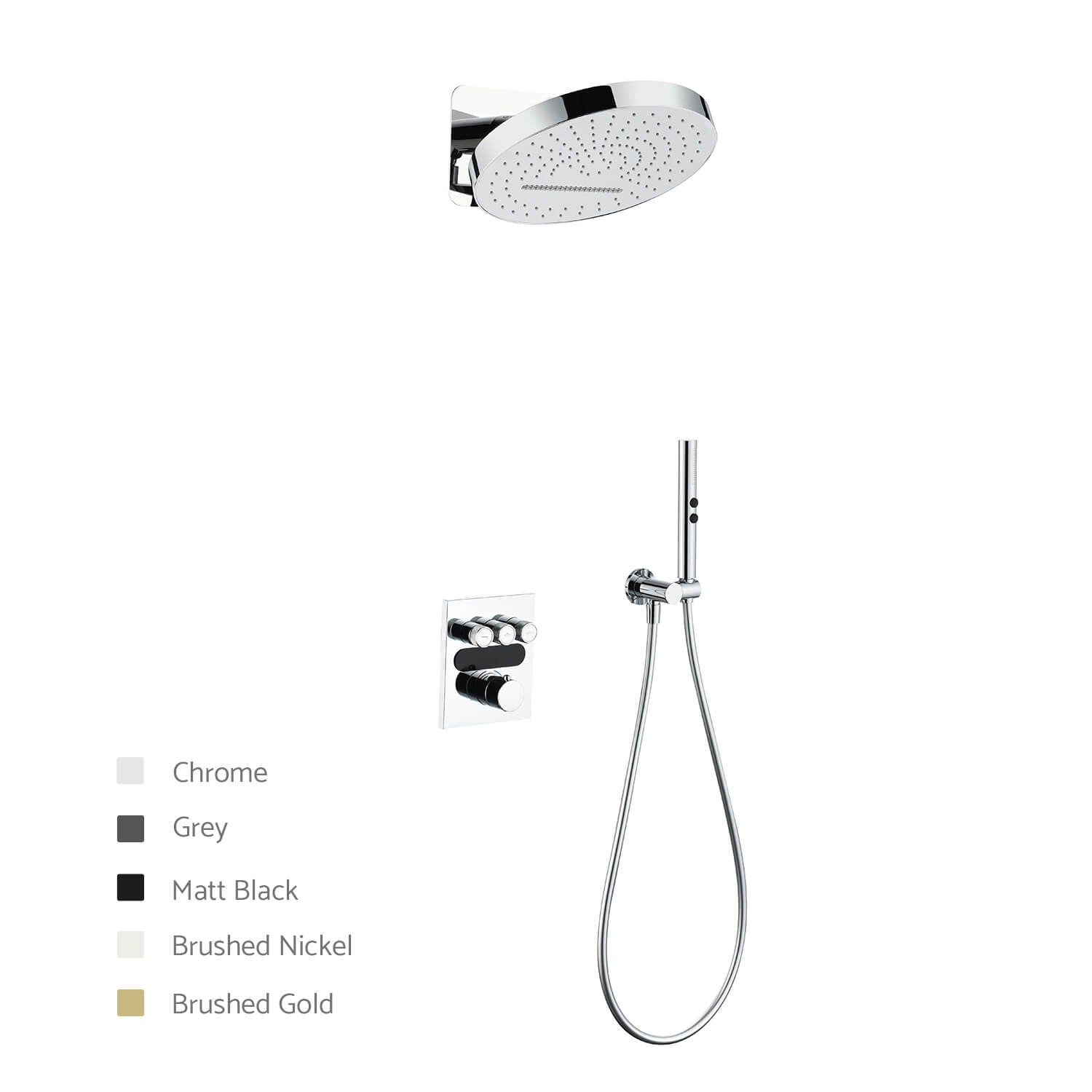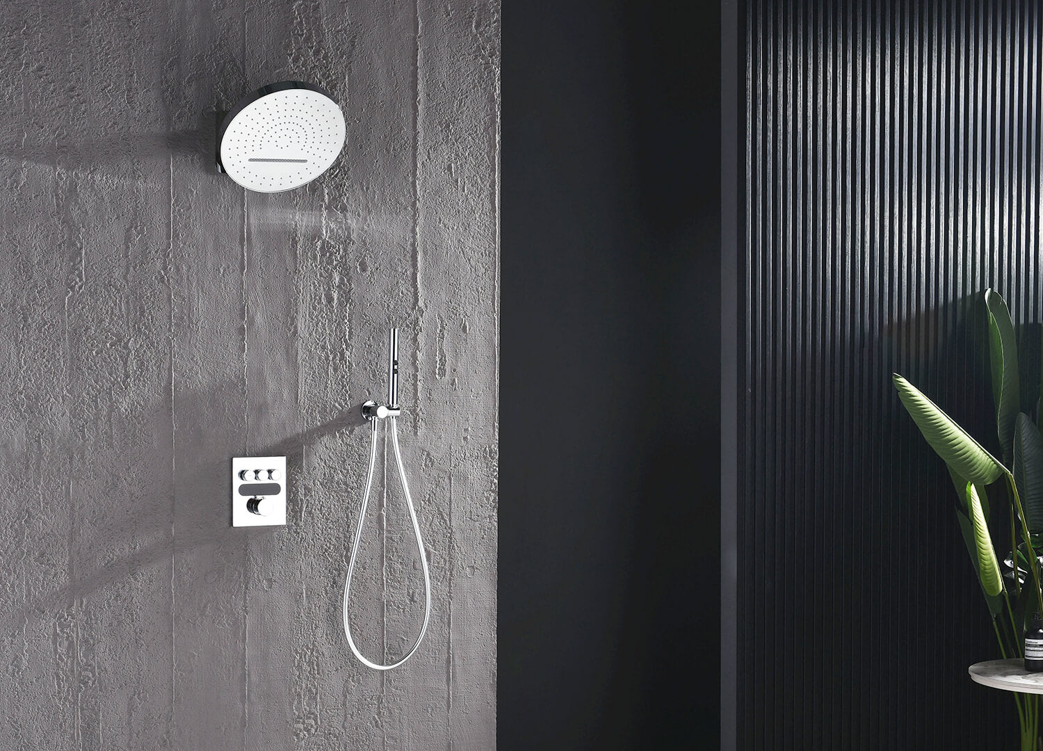 This new concealed shower transforms your daily routine with a larger overhead design and multiple spray modes for a more comfortable shower.