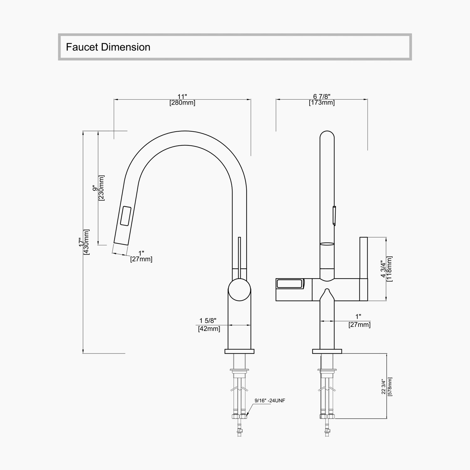 The Lefton Kitchen Induction and Pull-down Faucet KF2206, with arched silhouette design, is made of high-precision brass, combined with Lefton's top-level ceramic valve core, which enables precise control of water flow and temperature adjustment. Additionally, its pull-down swivel spout and nylon hose make it easy to rinse hard-to-reach areas of your sink. To add elevated convenience for homeowners and their kitchen, The battery-operated motion sensor technology allows you to enjoy a touch-less experience. It is activated by simply waving your hand or an object in front of it. The digital temperature and time display improves cleaning comfort and reminds you to save water.