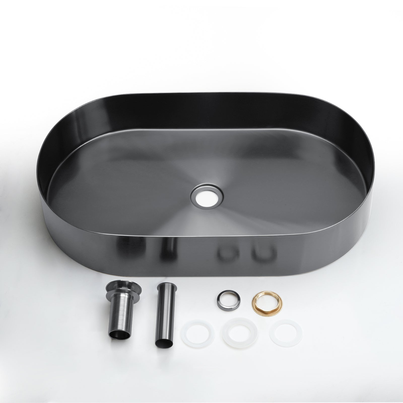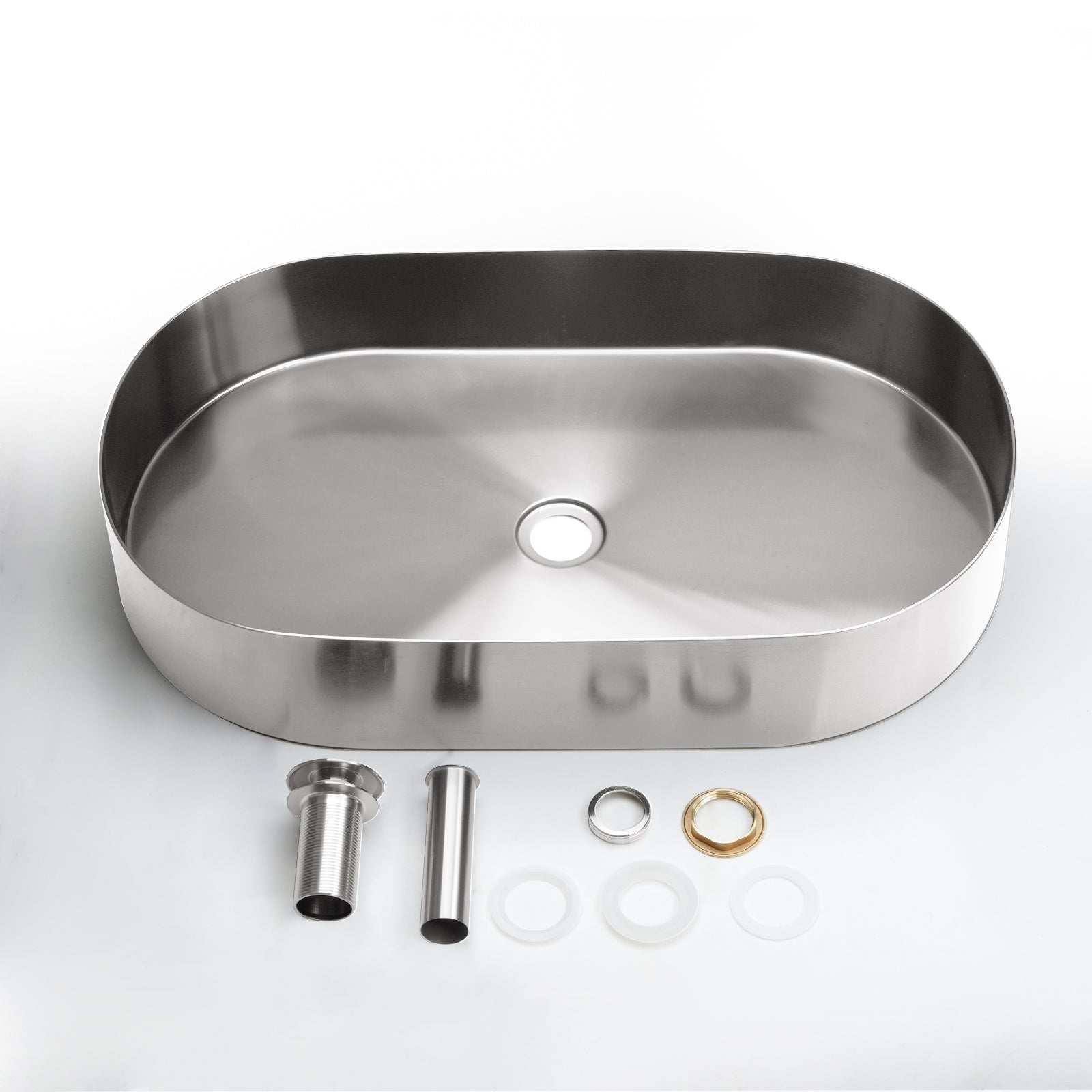 Lefton Modern Stainless Steel Oval Above Counter Bathroom Vessel Sink with Pop - BVS2403