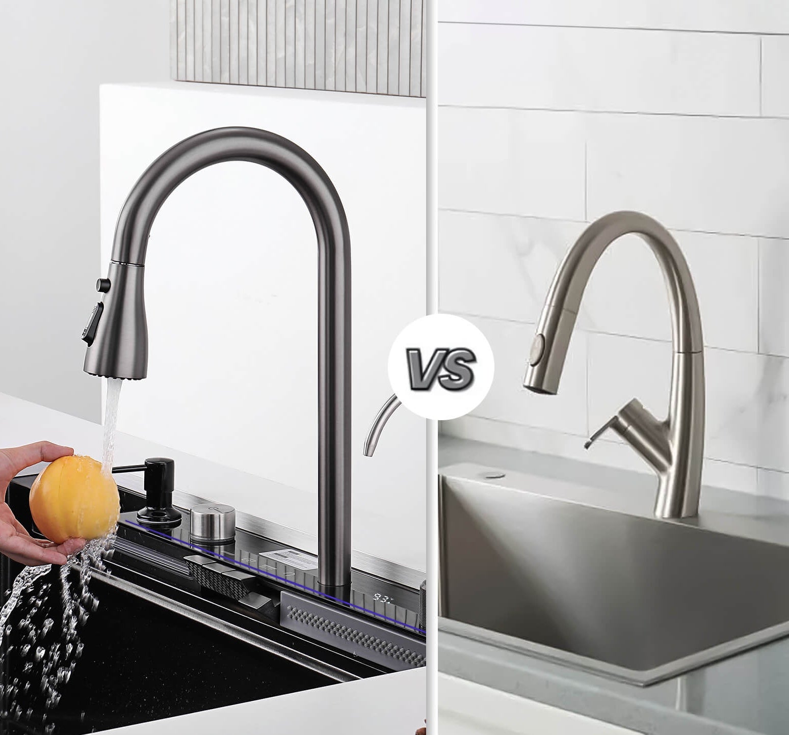 In the fourth generation, we paid more attention to the combination of function and aesthetics, replacing fixed waterfall spouts with adjustable ones, and optimizing the glass rinser, temperature control knob, and pull-out faucet.