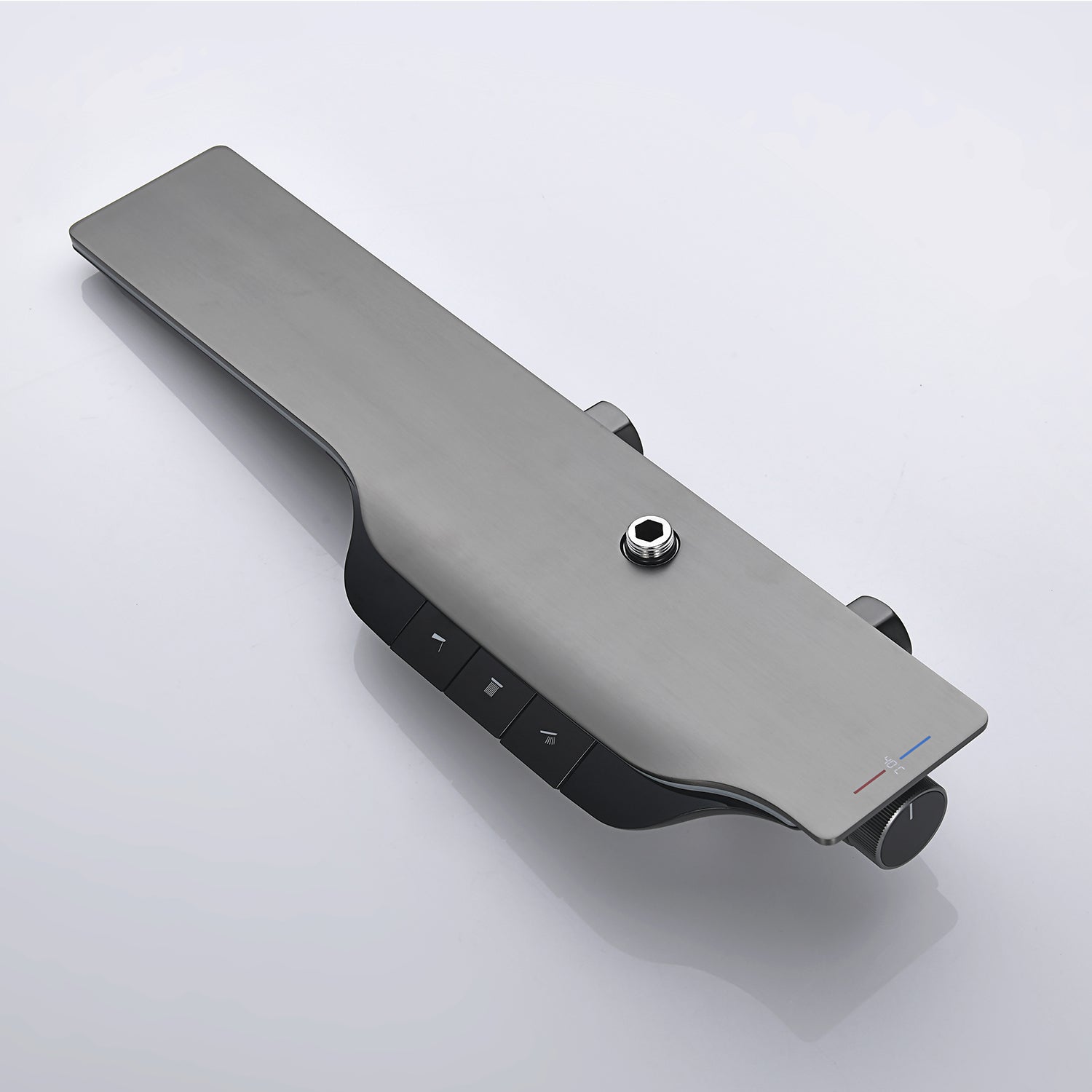 The main body of this SST2207 shower system is made of solid brass, and the nozzles are made of anti-limescale silicone, which improves durability and corrosion-resistant performance. The integrated LED light function operates without the need for batteries, automatically illuminating the shower when in use. This shower system combines multiple functions, catering to your diverse shower preferences and needs. Equipped with thermostatic technology and a temperature digital display, the system allows you to set and maintain your desired water temperature.