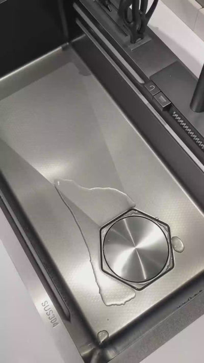 Revolutionary nano-coating and embossment on this kitchen sink's surface resist water and oil stains, enhancing durability and scratch resistance for unmatched performance.
